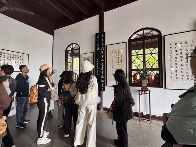 此后,党员们依次参观了湖心岛上的访踪亭、烟雨楼、来许亭。烟雨楼作为湖心岛的标志性建筑,当年曾是 “一大” 代表们凭楼侦查、确保会议安全的重要地点,如今楼内陈列的中共一大详细史料,让大家对那段历史有了更深入的了解;来许亭作为廉政文化教育基地,讲述着清代嘉兴知府许瑶光的勤廉故事,党员们在此感悟 “清正廉洁” 的为官之道,纷纷表示要在工作中坚守廉洁底线,永葆党员本色;访踪亭内,董必武同志 “烟雨迷濛访旧踪” 的诗句镌刻在石碑上,字里行间满是对革命圣地的缅怀,也让大家更加深刻地认识到南湖作为中国共产党诞生地的重大历史意义。